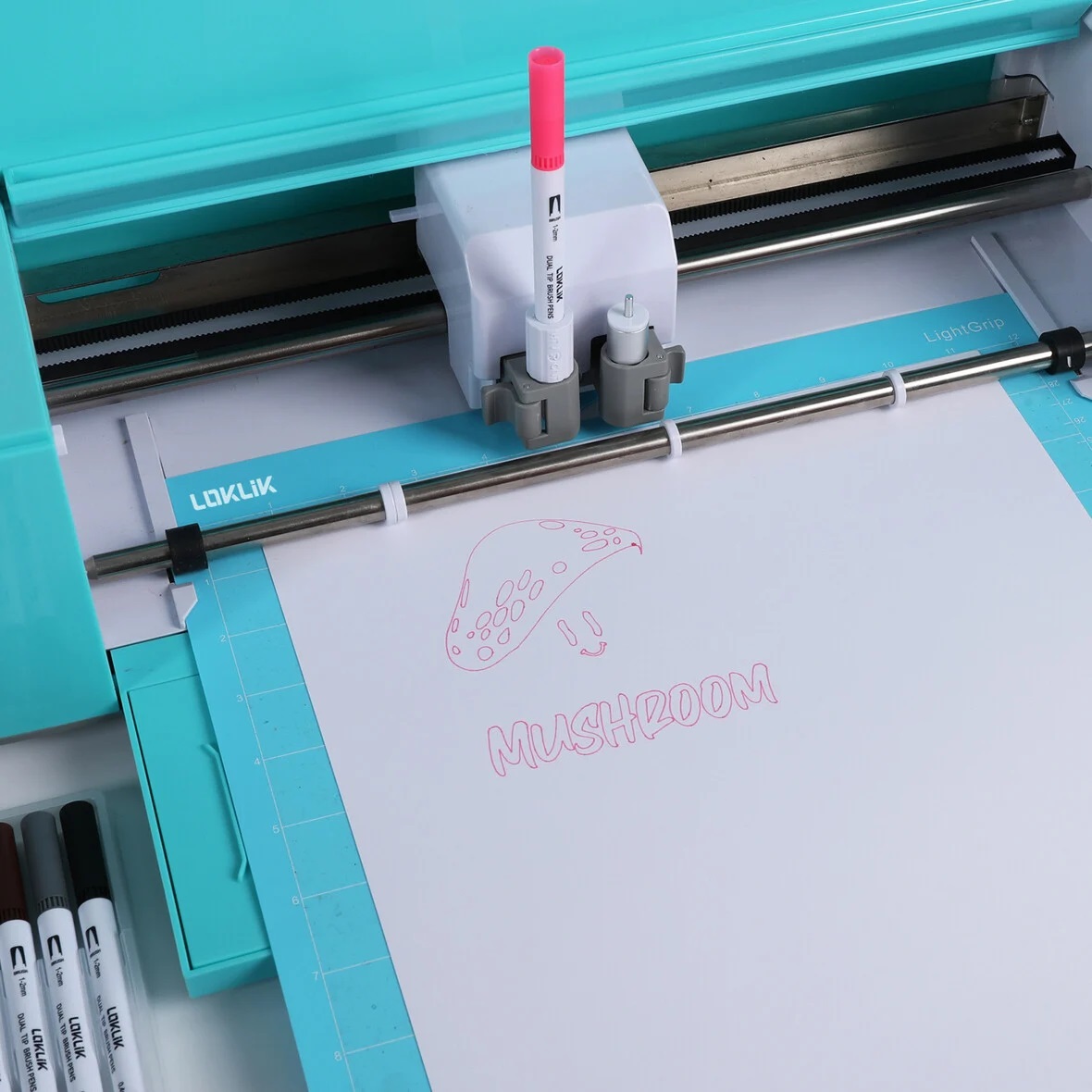 Die LOKLiK Dual Tip Brush Pens, die in 12 leuchtenden Farben erhältlich sind, bieten unübertroffene Vielseitigkeit und kreative Freiheit. Jeder Stift verfügt über eine 1-2 mm dicke Pinselspitze für kräftige Striche, Farben und ausdrucksstarke Buchstaben, während die 0,4 mm feine Spitze perfekt für präzise Details, filigrane Designs und zarte Konturen ist und mit dem LOKLiK iCraft™ verwendet werden können.